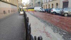 На Словацького завершили вкладання покриття майбутньої велосмуги.