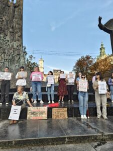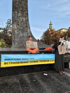 Біля пам’ятника Шевченку проходить чергова акція-нагадування про необхідність встановлення термінів служби для військовослужбовців.