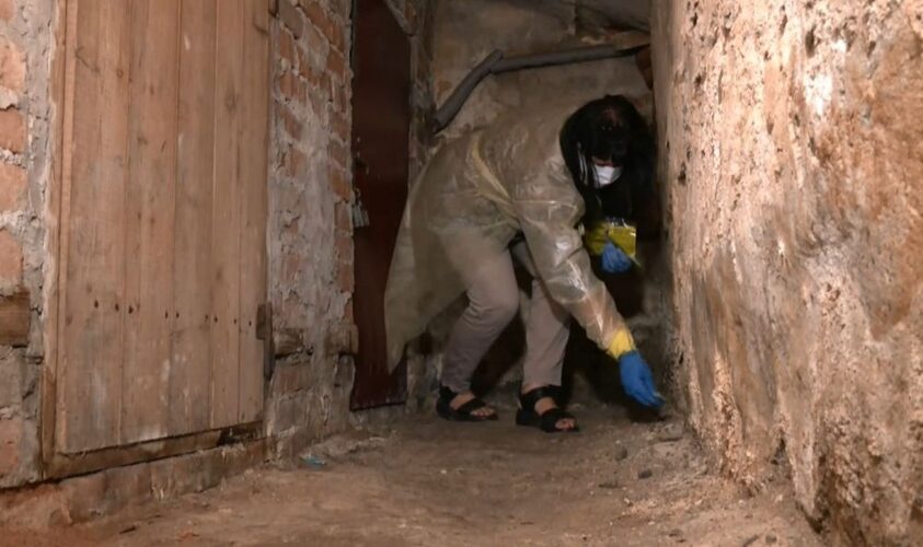 У підвалі будинку на вул. Григоровича, 4 вже розсипали спеціальні засоби для знищення гризунів. Як пояснює дезінспектор Зоряна Волошин, отрута діятиме приблизно місяць.