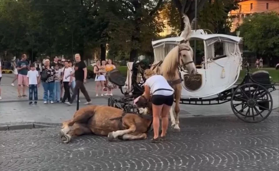 У центрі Львова впав запряжений в карету кінь: міська рада відреагувала