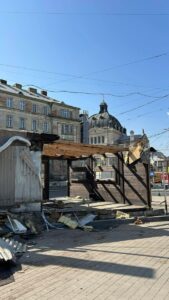 Позаду Оперного театру демонтують МАФ, де продавали кури-гриль. Місто наводить лад на території та готує її до оновлення.