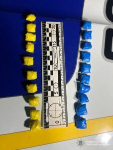 Правоохоронці встановили особу фігуранта та затримали його в порядку ст.208 Кримінального процесуального кодексу України. У затриманого було вилучено 33 «закладки» із вмістом речовини, схожої на наркотичний засіб канабіс, 20 «закладок» з речовиною, схожою на психотроп амфетамін та 10 – з речовиною, схожою на психотроп PVP.