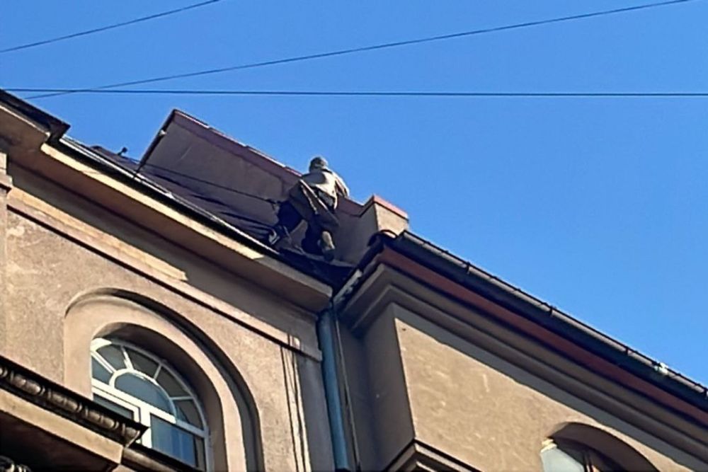 Як повідомили у Галицькій районній адміністрації, сьогодні на даху будинку на вул. Валовій, 15 працювали промислові альпіністи.