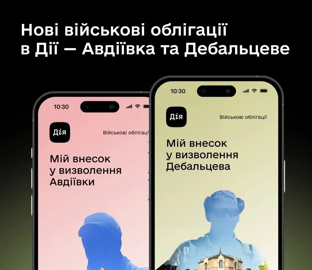 У застосунку “Дія” можна придбати нові військові облігації з назвами міст Донецької області – Авдіївка й Дебальцеве.