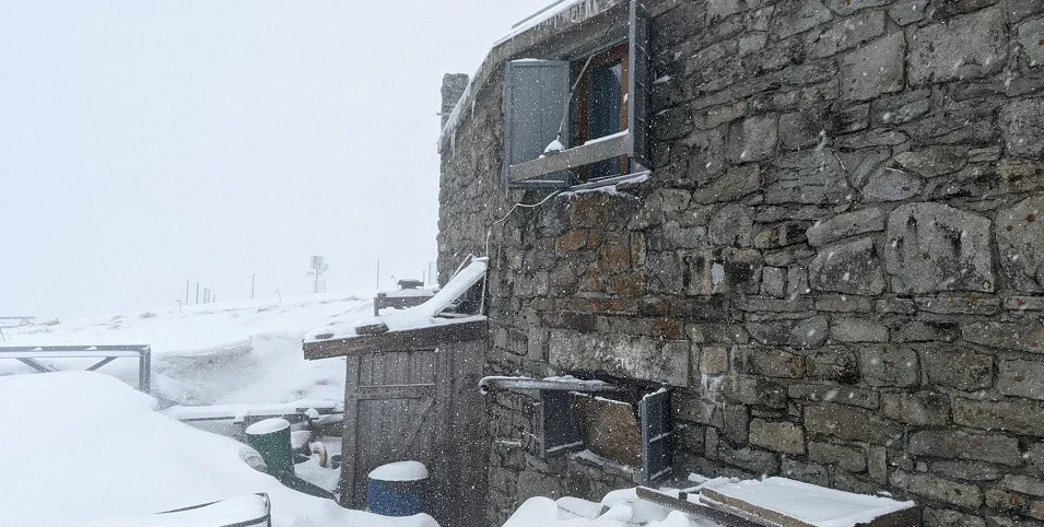 На вершині Піп Іван Чорногірський в українських Карпатах випав сніг. У горах також вітряно й тримається мороз.