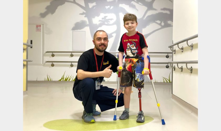Хлопчик втратив ногу у боротьбі з агресивною формою раку. Однак у львівській лікарні йому встановили протез й він знову вчиться ходити без милиць.