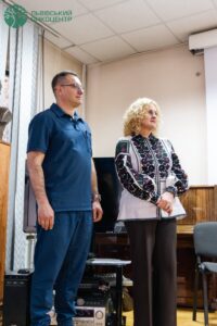 Генеральний директор Львівського онкоцентру Олег Дуда подякував виконавцям та керівництву Львівської національної філармонії імені Мирослава Скорика за неймовірний концерт для усіх працівників онкоцентру.