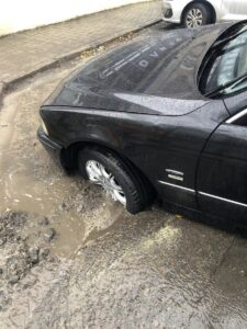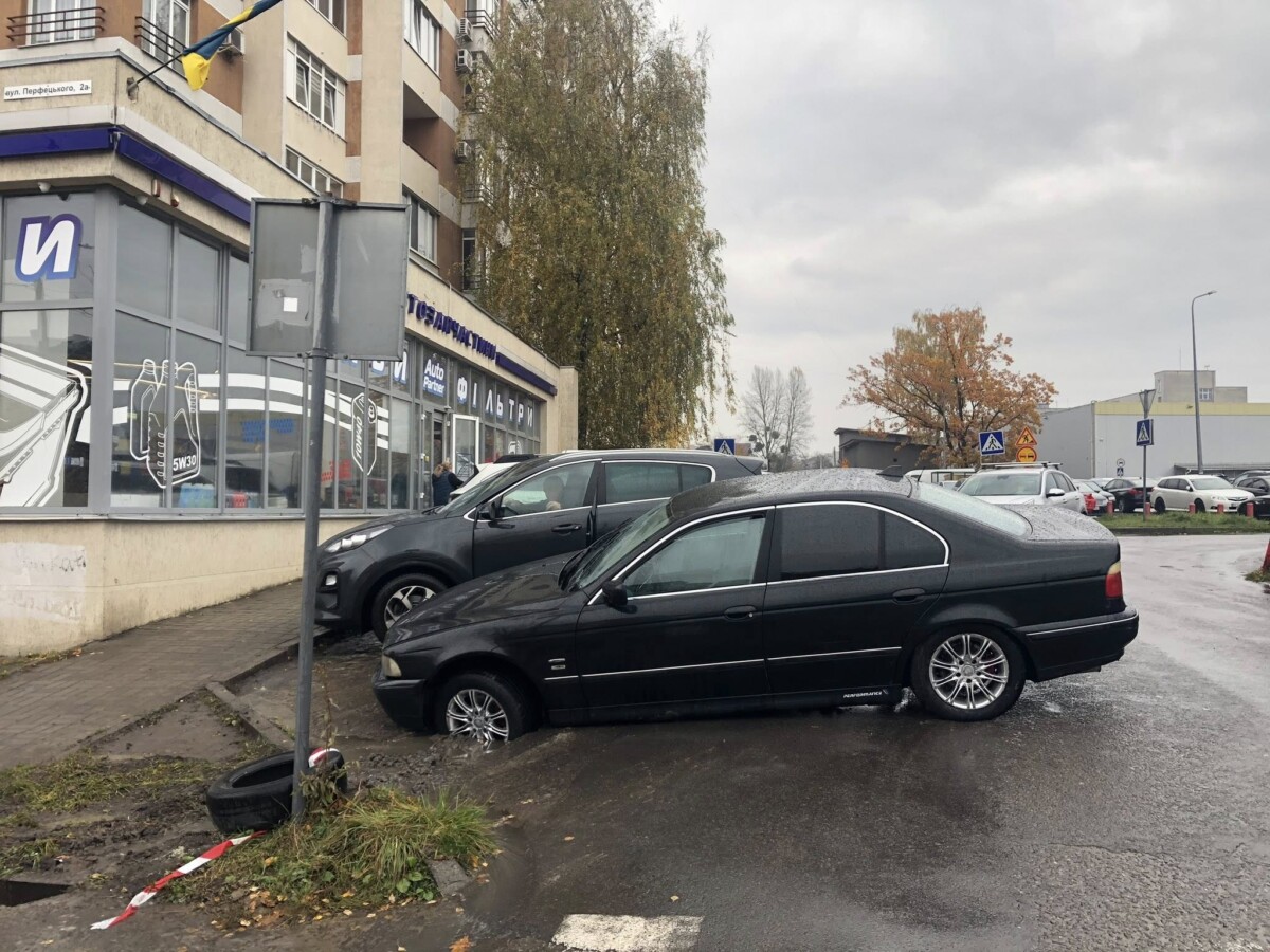 Автомобіль впав у яму та пошкодив дно авто та бампер.