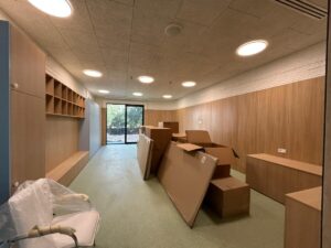 Мали сьогодні черговий робочий виїзд – дотягуємо деталі. Погода дозволяє доробляти благоустрій, освітлення. Всередині класи залишилось лише підлоги помити начисто і завершити монтувати меблі. Темпи добрі. Ніхто не сидить, склавши руки.