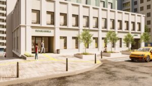“В нас загальна висота будівлі, згідно з проєктом має три поверхи. Тобто, існуюча будівля мала фактично два, ми надбудовуємо третій. І цей третій поверх по периметру є втоплений — відносно основних габаритів будівель. Витримана повністю вся архітектура і візуальне сприйняття сітки фасадів, до цілісного об’єкту”, – розповів архітектор проєкту Іван Капустей.