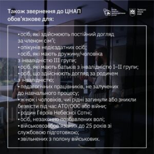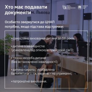<li>подача <strong><em>лише особиста</em></strong> – заявник має особисто прибути до ЦНАПу з оригіналами або належним чином засвідченими копіями документів для складання заяви щодо надання відстрочки</li>
