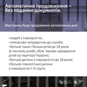 Відстрочки, підстави для яких можна підтвердити в державних реєстрах, продовжуються автоматично. Повторно подавати заяву не потрібно. Це стосується: