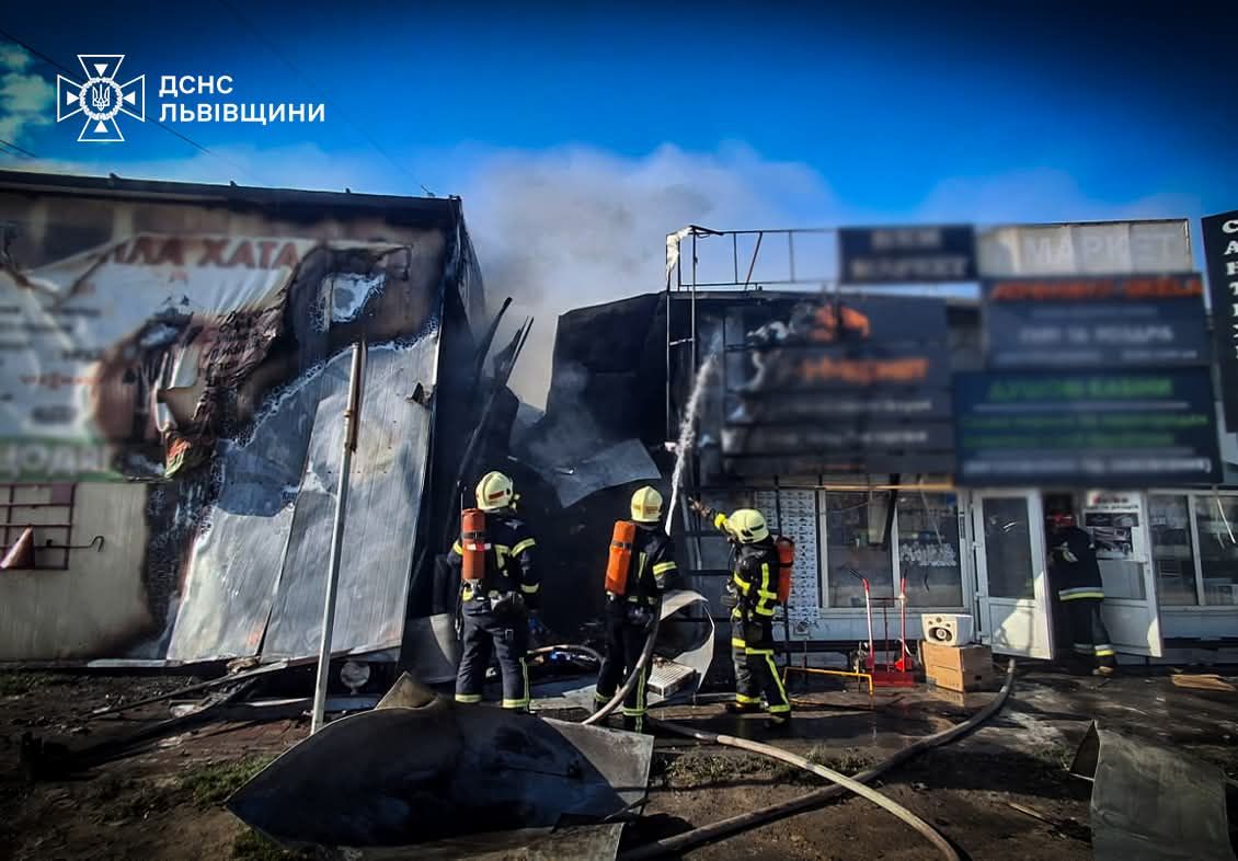 Львів: рятувальники ліквідували пожежу в торговельному павільйоні на вулиці Кукурудзяній у місті Львові.