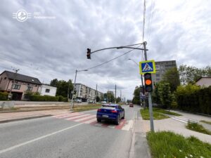 Цей світлофорний об’єкт регулюватиме рух на переході до трамвайної зупинки (через 2 смуги від центру), а також на двох інших переходах, які з’єднують вул. Бойчука з парком “Горіховий гай” (через 4 смуги й трамвайні колії).