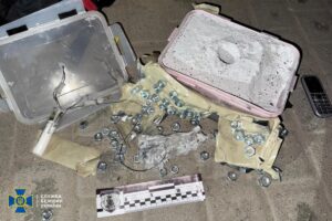 Як встановили слідчі СБУ, СВП був споряджений 4,5 кг вибухової речовини і додатковими уражаючими елементами – гайками.