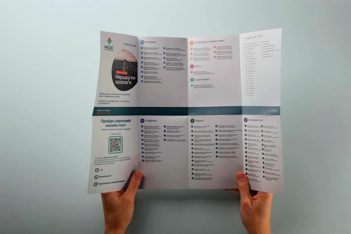 «Маршрути здоров’я», які можна знайти на оновленому сайті «Медіс» — це мапи парків/стадіонів/спортивних майданчиків, локацій для йоги та відпочинку; перемикач міст Львів / Івано-Франківськ / Тернопіль; фільтри за типами активностей; квест з корисними подарунками.