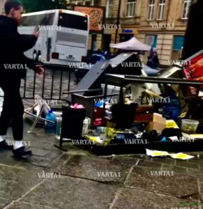 У Львові на вулиці Куліша навпроти ТЦ Магнус від пориву вітру перекинувся кіоск з шаурмою.