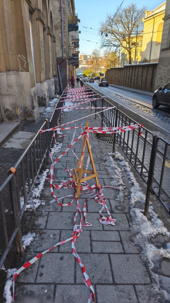 «Прошу пояснити, чи це нормальне вирішення проблеми нависання снігу на даху на вул. Гонти коло лялькового театру (пл. Данила Галицького, 1)? Куди мають діватися люди, які йдуть по цій вулиці? Чому мені не перегородили вихід зразу з дому, щоб я так далеко не заходила? На всіх інших вулицях таке ж вирішення?», – йдеться у повідомленні.
