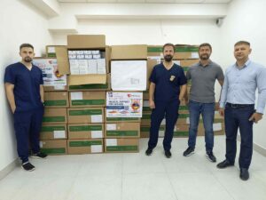 До складу допомоги увійшли: набори (сети) для апарату штучного кровообігу, шовні матеріали, дренажі, центральні венозні катетери, гортексові протези та інші важливі витратні матеріали.