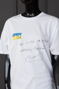 “Маємо унікальні футболки, підписані самим Святослав Вакарчук”, – йдеться у повідомленні.