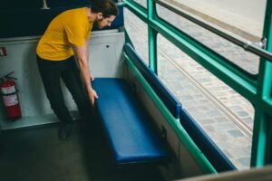 Зверніть увагу на одну важливу особливість: зручна посадка для маломобільних пасажирів у цьому трамваї здійснюється через треті двері, а не через другі, як ви звикли. Будьте уважні!