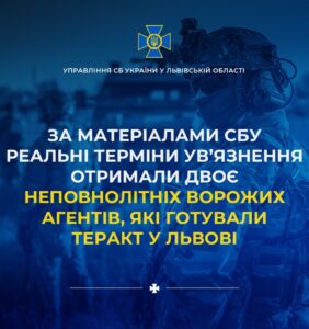 За матеріалами СБУ реальні терміни ув’язнення отримали двоє неповнолітніх ворожих агентів, які готували теракт у Львові