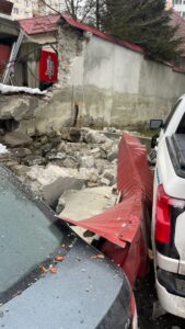 Сьогодні близько 5:00 ранку на вул. Під Голоском, 2 обвалилася частина підпірної стінки. Унаслідок цього пошкоджено автомобілі на паркувальному майданчику поруч.