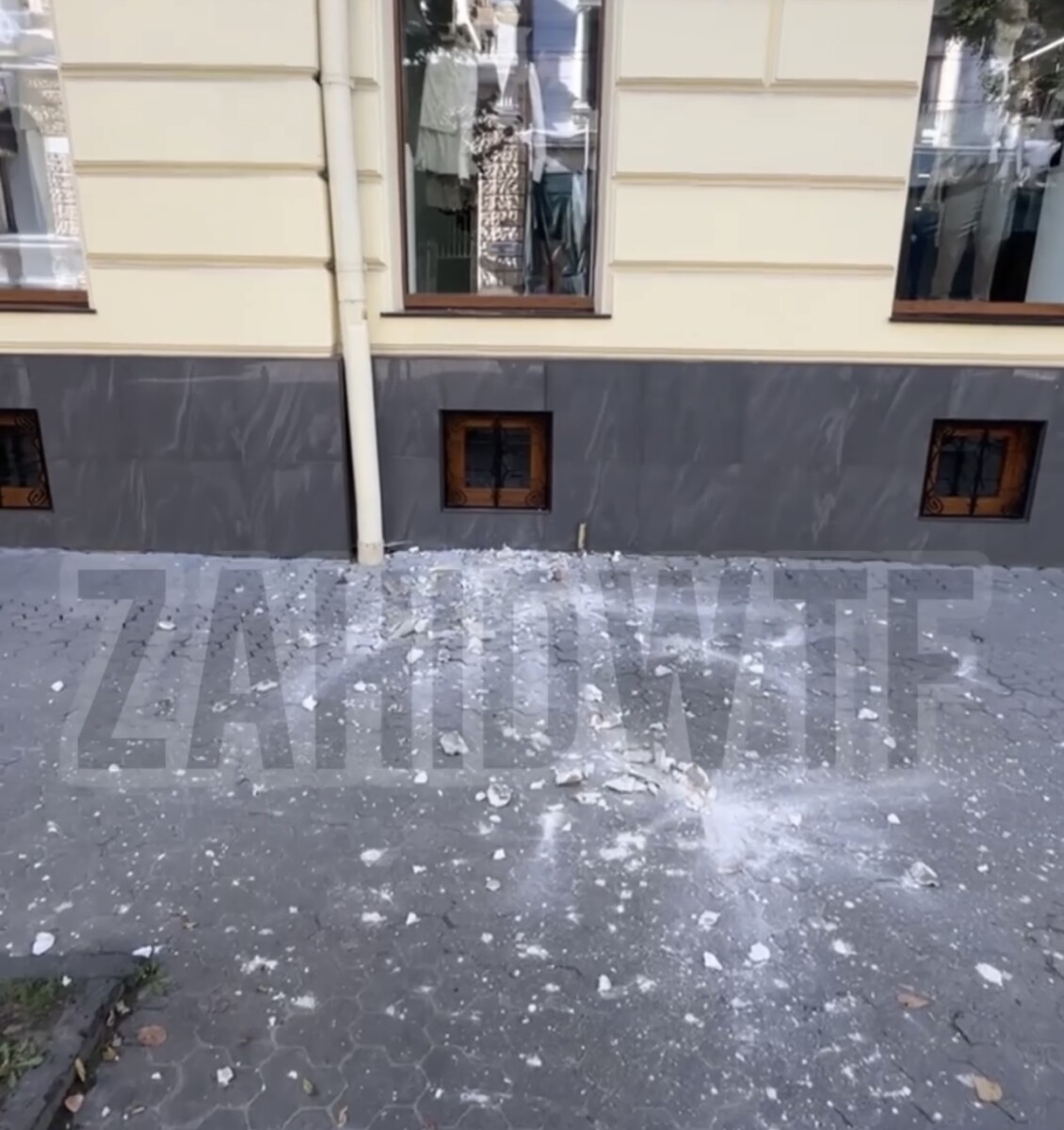 «Ледь людей не прибило – обвал фасаду на Січових Стрільців!», – йдеться у повідомленні.