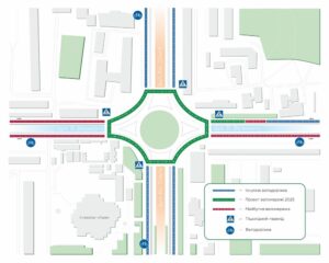Також існуючий пішохідний перехід на вул. Володимира Великого перенесуть на кілька метрів від кільця у напрямі вул. Стрийської. А додатковий перехід для пішоходів облаштують зі сторони McDonald’s, поруч із велопереїздом, що забезпечить наявність пішохідних переходів з усіх сторін кільця.