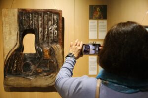 На виставці представили роботи сучасних українських митців, які вони створили як авторські інтерпретації та присвяти викраденим творам.