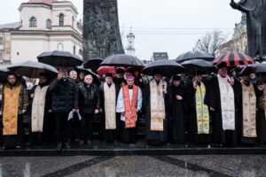 У супроводі колективу комунального закладу Львівської обласної ради «Заслуженої академічної капели України “Трембіта”» священнослужителі різних конфесій виголосили спільну молитву за мир і перемогу України.