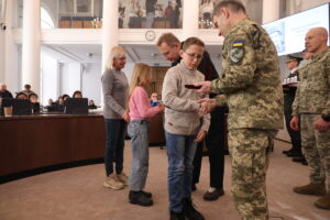 3. військовослужбовець 24‑ї окремої механізованої бригади імені короля Данила Сухопутних військ Збройних Сил України молодший сержант Іван Луцишин. Загинув у боротьбі з ворогом 7 червня 2022 року в районі населеного пункту Комишуваха Луганської області. Відзнаку отримали батьки – Надія Євгенівна та Петро Іванович.