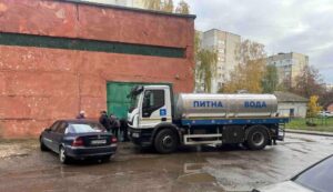 З них 9 автоцистерн безперервно роздають воду, здійснюючи технічні переїзди для поповнення запасів, а ще 2 водовозки наповнюють стаціонарні ємності для роздачі води у дворах, біля шкіл і лікарень.