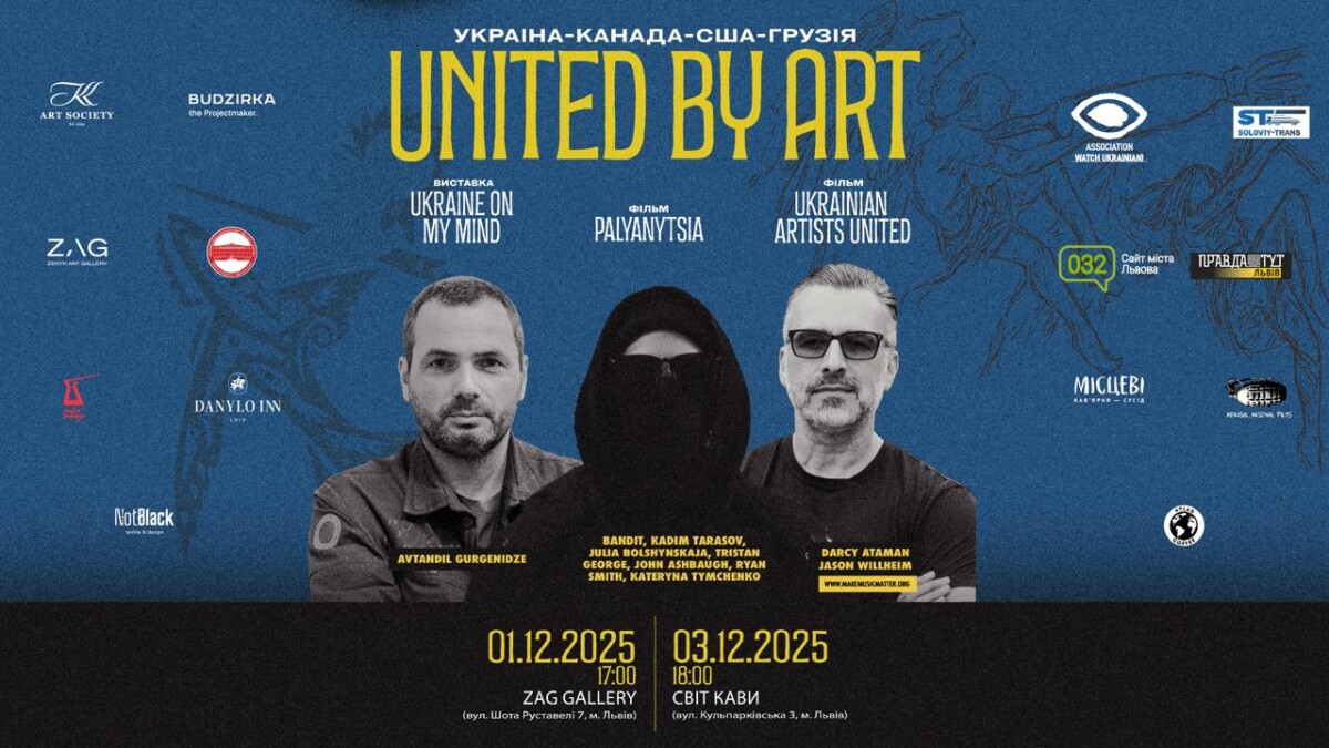 1 та 3 грудня у Львові відбудеться презентація міжнародного культурного проєкту “United by Art” — ініціатива, що об’єднує музику, кіно та мистецтво як універсальну мову солідарності.  Створюючи простір для діалогу між митцями та глядачами, ця подія робить культуру інструментом підтримки, співпраці та натхнення у часи викликів; водночас, її головна ідея полягає в тому, що завдяки мистецьким проєктам, створеним іноземними митцями в Україні, резонансно лунає голос за кордоном – голос України, транслюючи через культуру актуальні події та виклики сьогодення. У рамках проєкту будуть представлені роботи митців із Канади, США та Грузії. Вхід на подію безкоштовний за умови реєстрації.