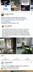 “Російська ракета знищила будинок відомого львівського художника та мистецтвознавця Yury Yamash, друга Дім Франка – Franko House .