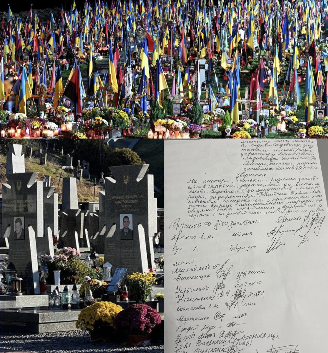 Родини Героїв ініціювали збір підписів з вимогою оприлюднити проєкт меморіалу (якщо він є), представити варіанти памʼятників на могилах (незрозуміло, чому вони мають відрізнятися від уже встановлених), і врешті розпочати роботи (пройшло 3 роки 8 місяців з часу першого поховання).