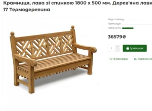 З каталогу індивідуального замовлення найдорожчими на ринку є лавки з різьбленням. Їх ціна варіюється залежно від розміру та складності різьби. Наприклад, одна з таких лавок виготовлена з термообробленого дерева вартує 36 579 грн.