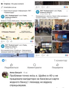 “Проблеми точно якісь є. Щойно в 40-у не працювали валідатори на банківські карти жодного банку) І леокард не відразу спрацьовував”, – пише керівник прес-служби Львівської обласної ради Анна Герич.