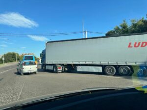 Можливо в даному випадку легкове авто вже стояло і водій фури просто був неуважний, але часто бачу як легковики пробують впихнутися біля вантажівок», – йдеться у повідомленні.