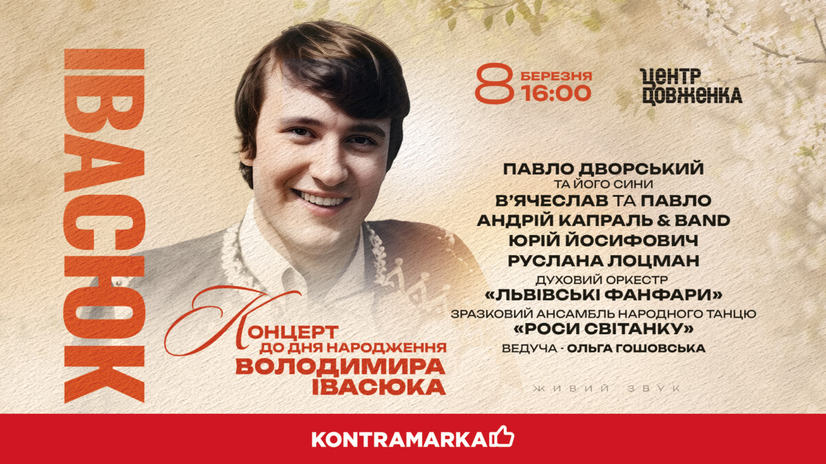 8 березня о 16:00 у Центрі Довженка у Львові відбудеться концерт До дня народження Володимира Івасюка – композитора, чиї пісні стали знаковими для української музики.