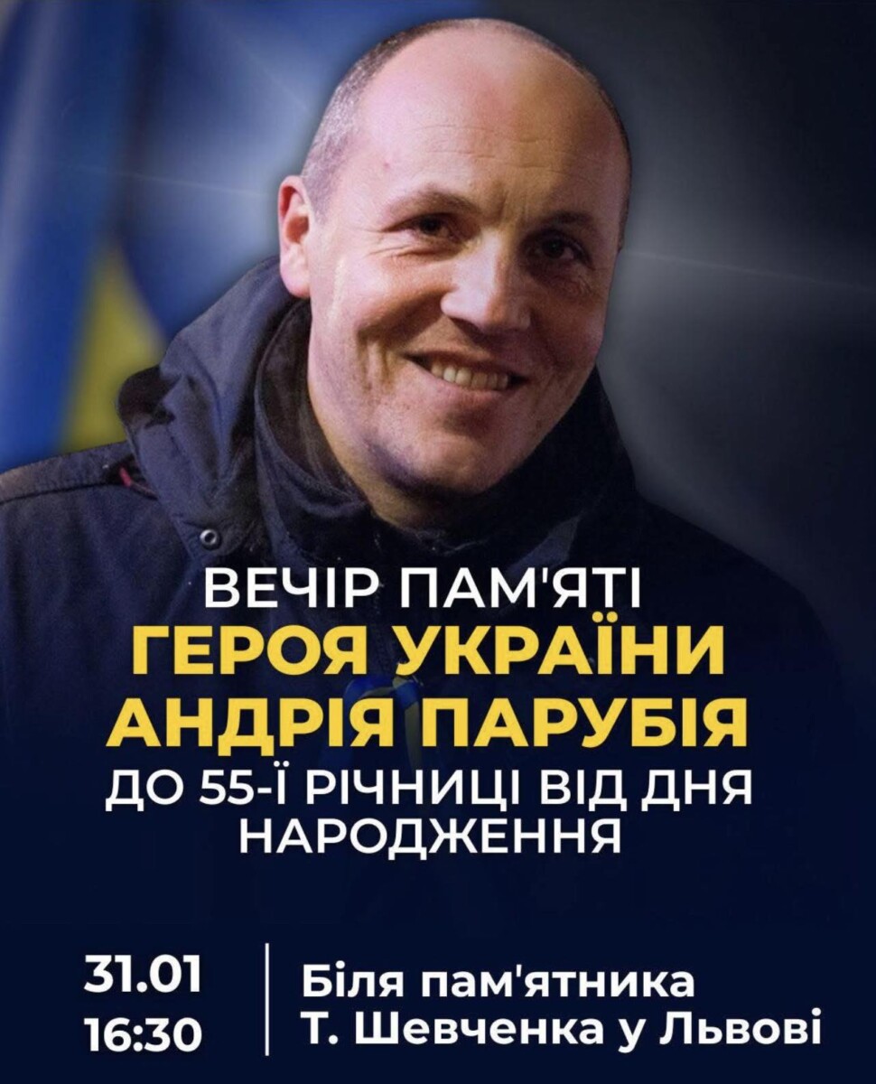31 січня 2026 року у Львові відбудуться заходи з вшанування памʼяті Героя України, Голови Верховної Ради України VIII скликання, державного та громадського діяча Андрія Парубія з нагоди 55-ї річниці від дня його народження.