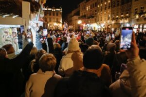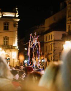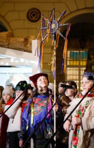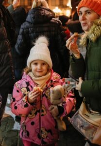 Під час відкриття шопки львів’ян та гостей міста пригощали пампухами, також виступив гурт «Дриґ» та хор учнів Львівської музичної школи № 8.