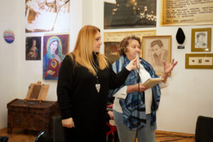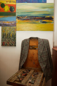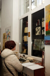 Серед експонатів – шкіряний плащ і кептар Чубая, його друкарська машинка, рукописи, архівні фото, оригінал альманаху “Скриня”… А ще – екслібриси і картини, які малював поет. Унікальний архів зібрала донька Грицька Чубая – Соломія. Виставка – наче своєрідний діалог між нею та батьком, адже Соломія також малює. Її живопис – це розмова з татом, місточком у якій є його вірші. Оскільки Соломія Чубай не знала батька (він помер, коли їй було лише 2 роки), то, коли їздила на його батьківщину, на Рівненщину, надихалася краєвидами українським сіл. Картини Соломії також представлені в галереї “БандеРоль”. Експозицію підготував художник Петро Сметана, який презентував Україну на Венеційському Бієнале. А серед тих, хто відкривав її, була й дружина Грицька Чубая – Галина Чубай.