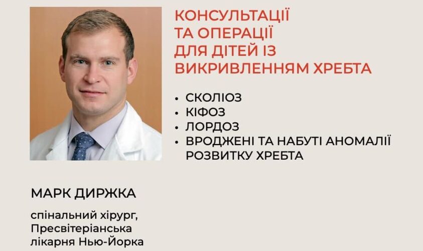 Провідний спінальний хірург зі США Марк Диржка з 13 до 22 травня допомагатиме фахівцям дитячої лікарні святого Миколая Першого медоб’єднання Львова лікувати дітей з вадами хребта.