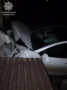 Тієї ж зміни на вулиці Мельника водій автомобіля Tesla вʼїхав у будинок.