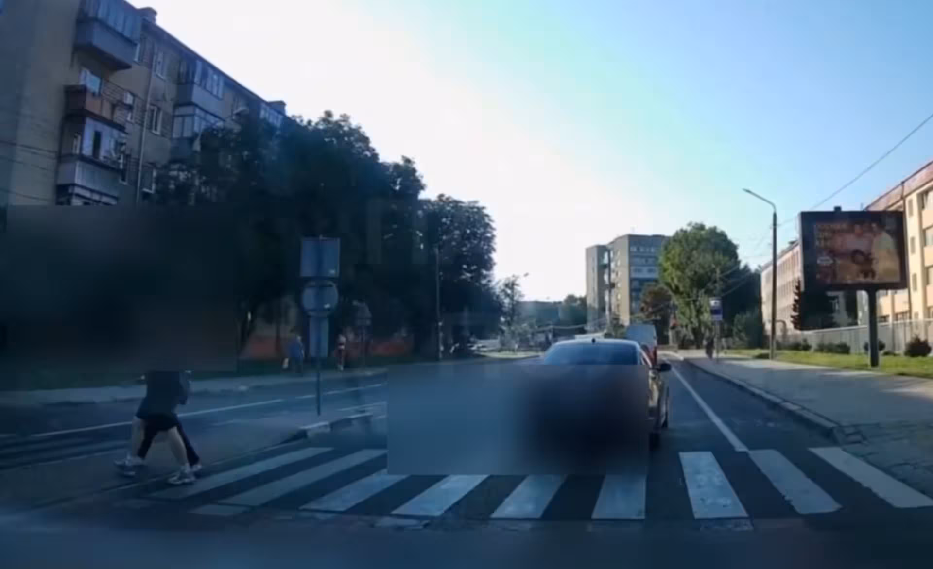 Водій стояв вже кілька секунд, натомість, керманич автомобіля Volkswagen Jetta наближаючись до пішохідного переходу не зменшив швидкість, не зупинився. Він ледь не наїхав на двох людей.