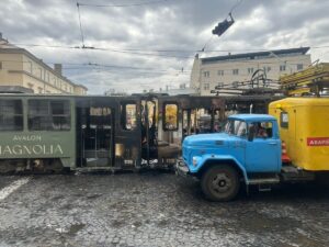Мінус один трамвай №1119 — попередньо сталося коротке замикання електропроводки в кабіні.