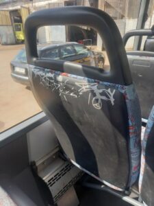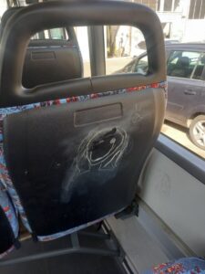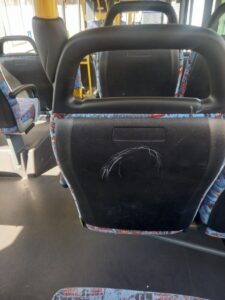 Тиждень тому на маршрут №20 виїхали великі комфортні автобуси — з низькою підлогою та кондиціонерами. Проте вже за кілька днів курсування на маршруті у салоні одного з них зафіксували випадок вандалізму — невідомі розмалювали п’ять сидінь.