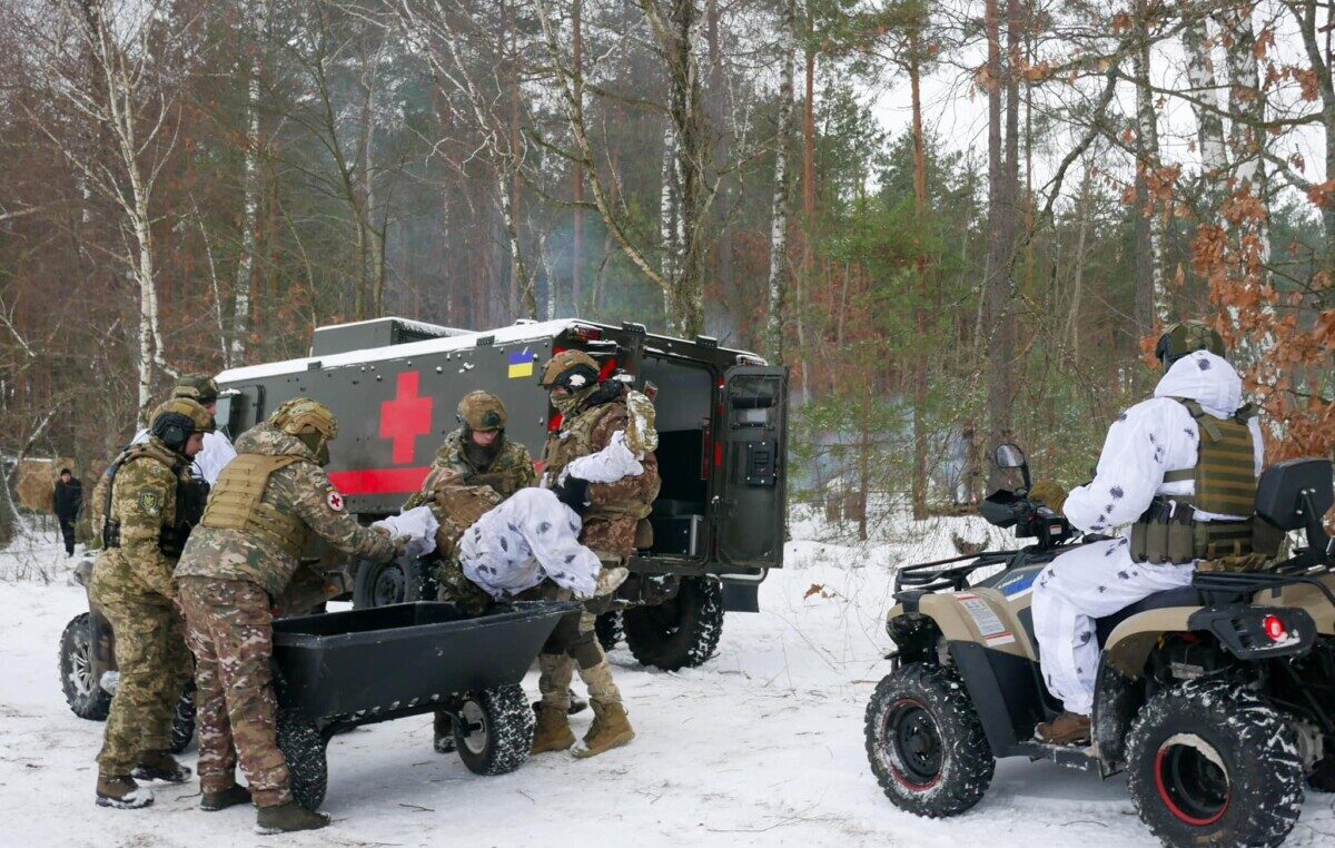 Крім цього, в умовах, наближених до бойових дій, військові організували показову евакуацію пораненого. До процесу імпровізованого порятунку залучили як екіпаж бронетранспортера, так і легковий вид транспорту.