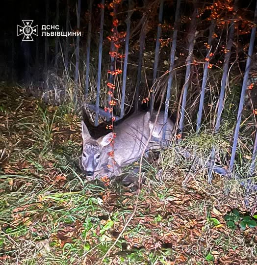 У вівторок, 21 жовтня, о 20:42 до Служби порятунку надійшло повідомлення про те, що у місті Трускавець поблизу озера у металевій огорожі задньою частиною тіла застрягла косуля.
